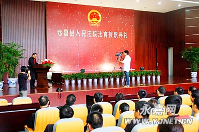 近两年来,县法院十分重视法院文化建设,提出了“文化治院”的总思路,开展了“提升司法服务质量年”和创建“学习型法院”活动,为法院文化建设注入了新鲜的活力。此次举行的“法官授职典礼”也是县法院文化建设的一项重要举措,通过简朴庄严的司法仪式,共同见证法官履职承诺,进一步激发法官职业尊荣感,培养法官职业操守,促进司法公正廉洁。