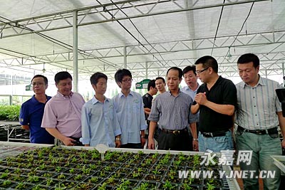 在温州原野园林工程有限公司,张加波一行参观了花卉苗木生产基地,目前苗圃棚内有200多种品种的珍贵树种和观赏植物,公司年产值约7000万元,是市“百龙工程”农业龙头企业。张加波对企业在低碳经济、生态产业发展取得的成绩给予充分肯定,并要求公司继续培育低碳模式下新的经济增长点,以花卉苗木产业为重点,以科技创新和管理创新为动力,做精市政、园林绿化工程产业,发展高效生态农业。在楠溪江农业集团有限公司,张加波与企业负责人进行座谈,听取有关情况汇报,他希望企业抢抓机遇,搞好农业产业化发展,打造具有永嘉特色的农业龙头企业。