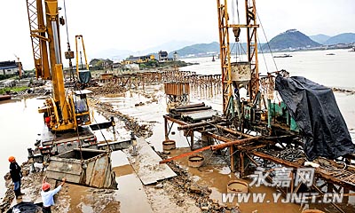 由于受今年上半年雨水较多和涨潮以及台汛影响,直接缩短了工期。一标段负责人张鲁刚告诉记者,为确保工程顺利进行,工人们放弃了休息的时间,确保按期完工。据悉,计划今年年底完成吹沙和抛石工作,打桩完成70%左右,上部结构300余米。记者 陈胜豪