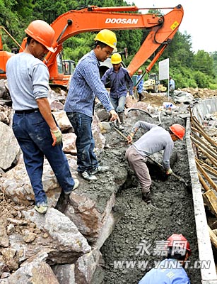 24日,记者在雁楠公路4标段看到,路边推土挖机、搅拌机轰响,工人正在溪边砌挡墙。据了解,雁楠公路4标段全长9公路,以路基拓宽、桥梁建设和隧道为主。该标段工作人员告诉记者,他们利用中秋节假日休息时间,加班加点赶工程进度,在施工上严格要求,保质保量,确保工程按期完成。