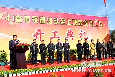 副县长秦肖在讲话中说,该工程的开工建设,对提高41省道的整体服务能力,完善温州市公路网络,推动楠溪江旅游事业发展,加快区域经济社会发展均具有十分重要的意义。记者 叶蒙 李建英 见习记者 何忠