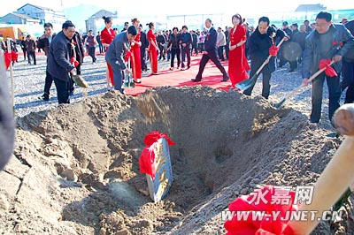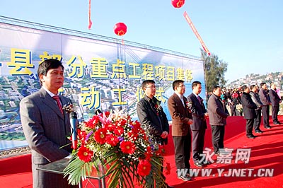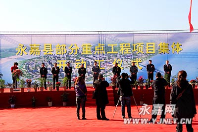 在诸永高速公路延伸线工程、县三塘隧洞分洪应急工程相继开工后,12月28日,县委、县政府在瓯北三江隆重举行县重点工程五个项目集体开动工仪式,再次掀起了我县建设新高潮,在2011年元旦即将到来之际,向全县人民献上了一份厚礼。县委书记任玉明宣布开工令,县委副书记、县长张加波致辞。县四套班子领导汪大清、谢崇福、陈建良、陈东晨、林乃排、金丐旦、郑小小等参加开工奠基仪式。
