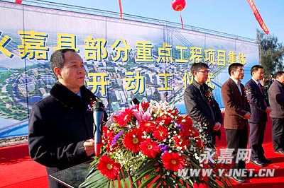 张加波在会上致辞,他指出,近年来,我县坚持大项目引领、常态化攻坚,全力推进重大基础设施建设,建成了一批事关永嘉长远发展的重大项目,有力地推动了城乡统筹发展的进程。“十二五”期间,我县将更加重视扩大投资在调整需求结构中的主力军作用,更加强化县城建设、三江新城、工业园区、旅游开发等投资主战场,更加突出交通、水利、市政、文化等基础设施建设,按照投资率超50%、固定资产投资超810亿元的“双超目标”,以实施“十大建设工程”和“十大民生工程”为引领,加快构筑枢纽型、功能性、网络化重大基础设施体系,全面改善县域生产、生活和生态环境。