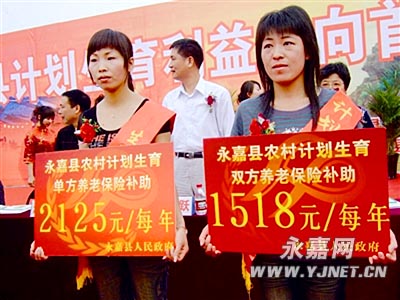 2007年,为了有效破解人口计生管理难的瓶颈,我县出台了《关于进一步加强计划生育社会抚养费征收和管理工作的通知》,明确了将社会抚养费的40%和县财政专项配套资金用于对自觉遵守计划生育家庭的奖励,2007年9月出台了《关于进一步加强计划生育利益导向机制建设的实施意见》,以农村计划生育家庭养老保险为核心的计划生育利益导向工作全面启动。