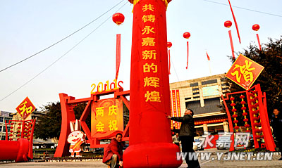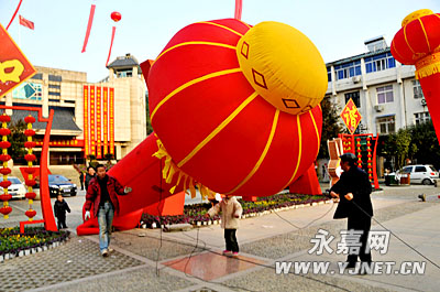 县政协八届五次会议22日隆重开幕。21日下午,记者在县政府和县人民大会堂看到,大楼上挂起了竖幅,飘扬着彩旗。大会堂广场更是彩球飘扬、百花争艳,经过装扮的广场笼罩着喜庆的气氛,迎接两会的召开。记者 陈胜豪