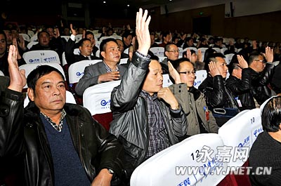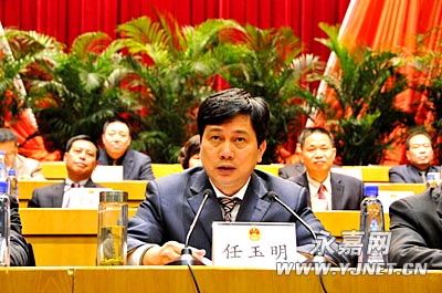 任玉明说,2011年是“十二五”发展的开局之年,是加快转型的重要之年,做好今年经济社会发展工作,具有十分重要的意义。前不久召开的县委十一届十三次全会,明确提出了切实深化“四大战略”,大力实施“产业升级、固定资产投资倍增、城乡统筹发展、‘三县三城联创’、党建保障”五大工程,全力推动产业转型、城市转型和社会转型,为今年工作指明了方向。这次人代会又集思广益,进一步明确了各项工作的具体目标、任务和措施。全县上下一定要进一步振奋精神,开拓创新,求真务实,按照加快发展、转型发展、绿色发展的要求,全面贯彻落实县委全会和县人代会的各项决策部署,为加快建设富裕安康、生态宜居的现代化新永嘉做出积极贡献。