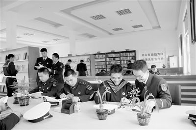 上图:官兵在文化学习中心读书看报。刘亚迅摄