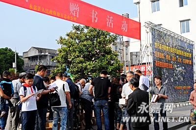 为纪念中国共产党建党90周年和《地方志工作条例》颁布实施5周年,进一步发挥地方志“服务当代、垂鉴后世”的作用。5月20日,县志办在屿山公园广场举行“书香五月”赠书活动。
