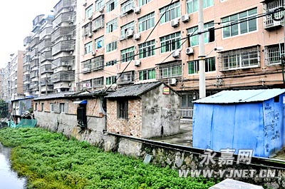 接到投诉后,记者随县规划建设局瓯北分局有关人员一起来到现场,只见该处居民房有7层,在楼顶上的确有违章加层现象。在居民房的后面,记者看到60米左右长的沿河道路上有10多处违章建筑立在那里,还有人开起了小卖部。在双塔路龙桥村路段另外一侧的房屋后面,记者同样看到有成排的违章建筑,脏、乱、差现象十分突出。