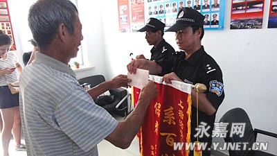 近日,沙头镇响山村刘丐义跟几位亲友一起带着锦旗敲着锣,来到上塘治安巡逻大队,感谢巡逻队员帮他找回了两头耕牛。