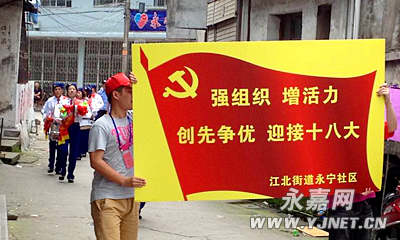 在军鼓队悠扬、雄壮的乐曲声中,昨天,江北街道永宁社区开展的创建平安社区暨党员干部环境洁化活动拉开了序幕。该社区全体党员、治安巡逻队、志愿者约60多人参加了活动。