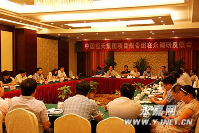 受有意向在楠溪江参与旅游项目投资开发的中国恒天集团及相关央企组团投资方的委托,中国恒天集团项目报告组在我县调研,并于9月5日举行调研反馈会。县领导盛秋平、胡宝锋、季健中、金盾参加会议。