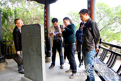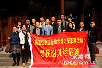 南朝宋永初三年(422)八月,谢灵运受权臣排斥,出守永嘉郡。由于在政治上遭到打击,他心情抑郁,在政事之余,便放情山水,游踪所及之县有永宁(今永嘉县)、安固(今瑞安市)、乐清(今乐清市)等地,每到一处,均有题咏。岁月嬗递,千载而下,遗迹犹存,其中尤以永嘉县、温州市区居多。11月2日,“楠溪江谢灵运山水诗之旅”采风团一行,首往市区,一探谢公遗迹。