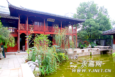 我们慕名走进了池上楼。据地方史载,池上楼原址在今鹿城东公廨,已毁,谢灵运有诗《池上楼》即写于此,并有千古名句:“池塘生春草,园柳变鸣禽。”后人因谢灵运曾在积谷山下“创第凿池”,便在池边建“池上楼”,池名为“谢池”,以为纪念。清代道光年间(1821-1850),湖南粮道邑人张瑞溥辞官回归故里,购买这块地,易名为“如园”,建造了“怀谢楼”、“春草轩”、“月担桥”、“小赤壁”、“鹤舫”等亭榭池桥,一时成为温州名园。池上楼面阔三间,四面回廊,临池有靠槛,整个建筑为木构建筑,建造雅致。环视园中,见楼榭飞檐翘角,斗拱交接,灵动有致;间有假山花木,布置精巧,令人赞叹。如果这座温州城内的小山有灵魂的话,那么池上楼便是,它为积谷山增添了文化内涵。历代登临池上楼的文人骚客颇多,题咏不绝。清代楹联大家梁章钜曾在池上楼撰有一名联:面壁拓幽居,一角永嘉好山水;筑楼存古意,千秋康乐旧池塘。
