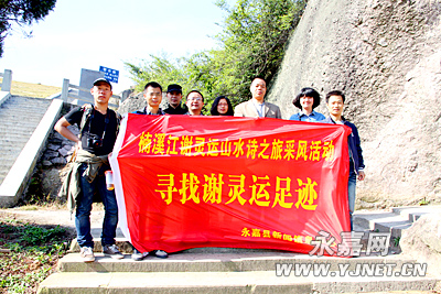 谢灵运山水诗之旅采风团成员在黄田街道办事处工作人员的陪同下,来到了存有石门遗迹的东联村。村里的老人当起了导游,为采风团成员介绍了遗址石门及石门寺。而“石门涧六处,石门溯水,上入两山口,两边石壁。右边石岩,下临涧水。”谢灵运《游名山志》所描述的情景,早已被如今的水库淹没,难以重现。
