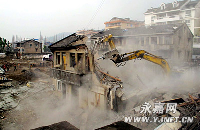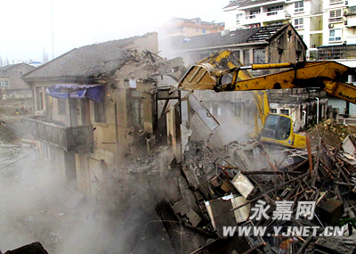 1月23日,上塘中心城区管委会会同公安、城管等部门400多人,对永建路北段A区最后三幢老房子进行了全部拆除,县城旧城改造迈出了实质性的一步。