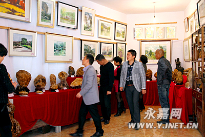 农博会上,除了农产品的展示,还有旅游产品的展示。楠溪奇石的展区颇具人气,爱石之人孙亭泉说:“这次沙头镇范围内的11名奇石爱好者以展销的形势联合参加,这里有110块奇石。”此外,该馆共同展销的还有永嘉美协的楠溪江画作。