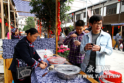 在古色古香的丽水商业街上,金粉夹、青草豆腐、麦饼等小吃应有尽有,板栗、早香柚、小黄姜、乌牛早茶等农产品目不暇接,楠溪奇石、楠溪画作相应展出……据悉,该次旅游农产品博览会共设有传统制作工艺区、旅游产品区、特色美食区、地方产品展区等4大展区,共126个摊位,展出品种80余个,全县100多家知名企业和商户参与展示。