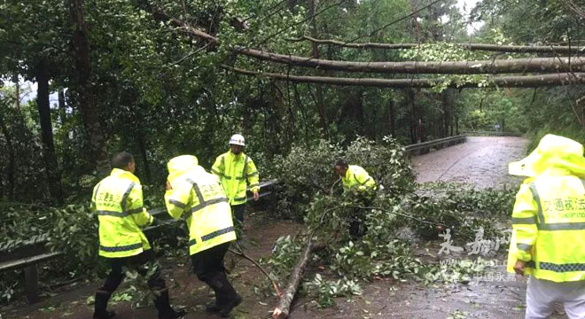 本次台风带来的狂风暴雨导致我县境内多条公路塌方、路面积水情况特别严重、路肩树木倒伏,特别是104国道、223省道、330省道、虹三线、上下桥、上桥线公路两侧高大乔木倒伏、折断,有些根浅的甚至被连根拔起,导致路面占用,严重影响了公路的安全畅通。县公路部门第一时间组织人员赶赴现场迅速进行应急抢险工作,将有安全隐患路段进行封闭抢修,动用养护车、油锯、切割机等机械,扶正歪斜树木、清除倒伏树木,奋力抢险。