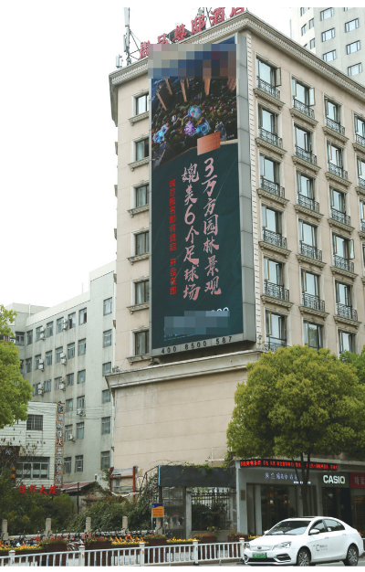 根据泰顺县财政局的调查,记者找到中标供应商的广告位。涉案广告位有两个,一个是位于温州市区的温州国际大酒店三楼外墙大型广告牌,另一个则是距离不远、大南路上的尚品尊邸酒店外墙广告牌。这两个广告位均位于繁华的大南商业圈,是炙手可热的广告黄金旺铺。