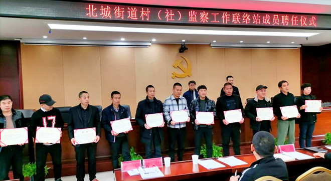 会上宣布村(社)监察工作联络站站长和联络员名单,颁发村(社)监察工作联络站站长和联络员聘书。