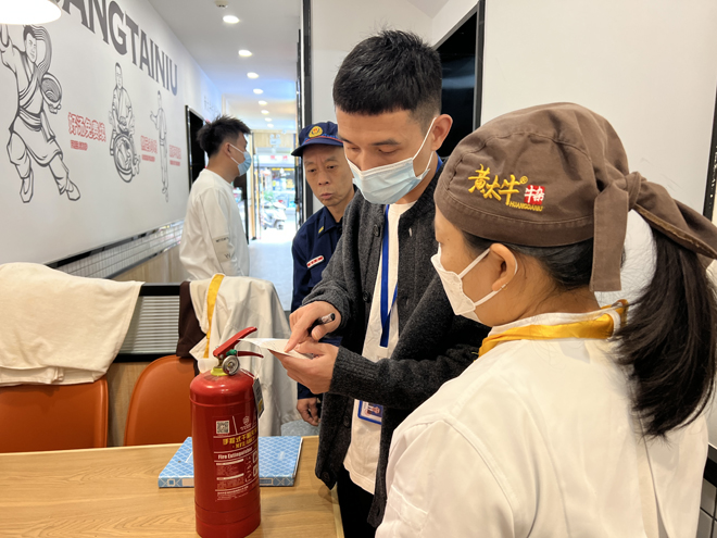 “2楼仓库的易燃纸箱清理掉,2楼后面的床铺搬掉,电器线路要套管......7天时间内要整改到位。”一大早,在黄太牛牛杂(岩头店)内,岩头镇消防管理站的工作人员正仔细排查消防隐患,并现场告知整改意见,张贴合用场所消防安全不合格告示牌。岩头镇消防管理站负责人廖金达介绍,目前合用场所普遍存在的问题,主要还是电器线路、生产经营与生活区实体分割等。他们现场出具整改提升详单与合用场所消防安全检查记录表,接下来还会有人员继续到户上督促商家积极整改,如果在7天之内商家不进行整改,他们会采取强制性的断电措施。