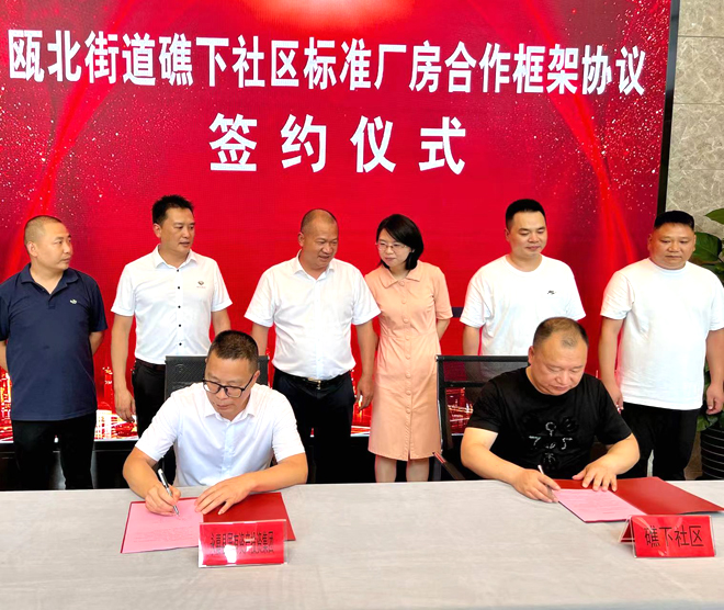 为进一步盘活瓯北街道礁下社区集体资产资源,搭建社区与国企交流合作平台,探索重工上楼新路径,发展壮大村集体经济,助推瓯北产业发展。7月4日上午,礁下社区在瓯北商会广场举行标准厂房合作框架协议签约仪式。