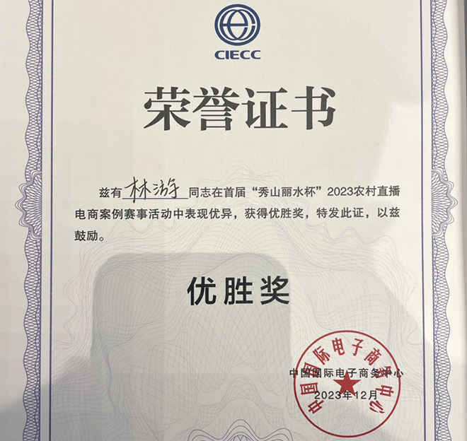 近日,首届“秀山丽水杯”2023年农村直播电商案例赛事活动举行,几经推荐、审核、PK,来自桥下镇韩埠村“一肩挑”、桥下镇数字直播综合党委办公室主任(兼)林游进入个人决赛,并通过现场分享“党建统领·数字直播”,最终取得第14名(优胜奖),属温州最好成绩。