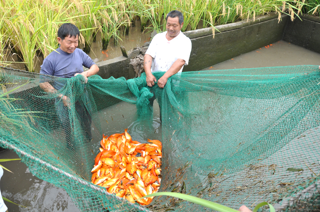 上世纪八十年代永嘉开始推广稻田养鱼技术,放养大鱼种规格,科学投饲以提高产量,1992年开始推广沟坑养鱼技术,并出台扶持政策改造沟坑设施,本世纪初开始推广无公害和标准化技术,制定了《无公害田鱼稻鱼共生技术规程》地方农业标准规范,加大财政扶持力度,对稻鱼田间工程设施给予90%以内的补助。2020年开始创建省级稻渔综合种养示范基地为抓手,打造省级稻渔综合种养重点示范县。稻田养鱼和田鱼已分别成为永嘉六大农业支柱产业和六大农业主导品种之一,产业模式由传统的粗放低产型向高产高效的瓜果综合立体型转变,养殖品种由单一型向多样化转变,养殖规模由家庭小生产型向规模化转变,养殖技术由低科技含量向无公害标准化转变。