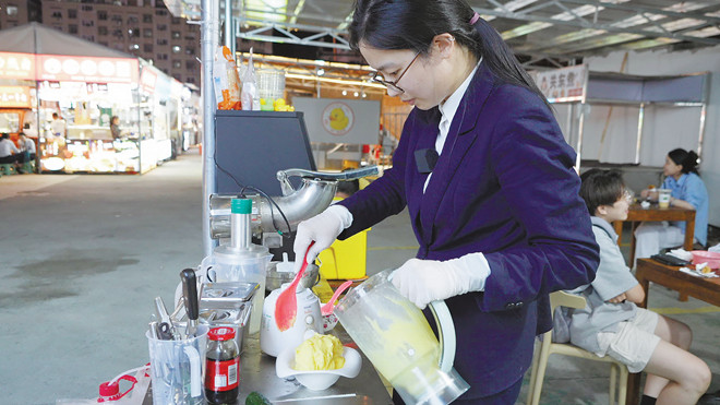 “银行工作按流程办事,每个步骤都有标准;摆摊则要灵活应对各种突发情况,天气、客流、顾客口味都要考虑。”金炫澄坦言,“摆摊就是想证明自己还可以做些什么,让自己走出舒适圈,多一份收入。”她认为,摆摊可以低成本试错,作为餐饮新手,她把摊位当作实战课堂,根据天气调整备货量,通过客流数据优化营业时间,从选品定价到客户维护,每个细节都是宝贵经验。在摆摊过程中,她也收获了成长与自信。