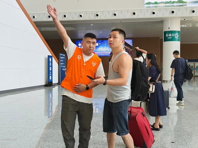 9月30日下午,温州北站内人流如织,永嘉县义务工作者联合会志愿者身着橙色马甲,在自助服务区、候车大厅为旅客做指引,让旅客们的匆忙旅途添了些许温暖。