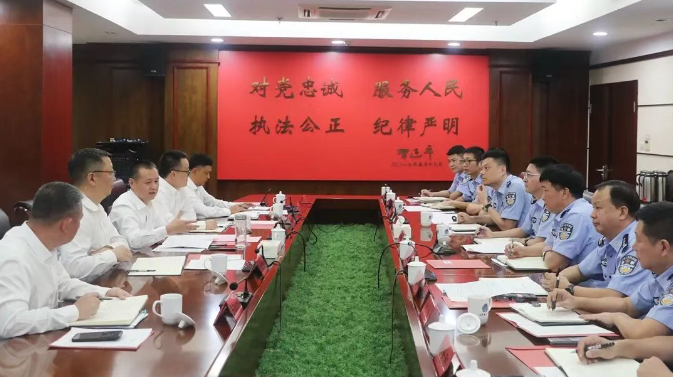 吴呈钱一行首先来到县公安局,主持召开座谈会,听取队伍建设、执法规范、基层治理等工作汇报。吴呈钱强调,要牢记公安姓党,永葆忠诚政治本色,在政治建警上再加力、在主题教育上再深化,确保公安工作始终沿着正确的方向前进;要聚焦护航发展,切实履行职责使命,在项目建设、营商环境、城市发展等方面,增强履职意识、发扬斗争精神,做到“经济发展到哪里,保障工作就紧跟到哪里”;要紧盯主责主业,切实维护一方稳定,全力做好防风险、保安全、护稳定各项工作;要强化管警治警,锻造过硬公安铁军,扛起硬担当、锤炼硬本领、保持硬作风,在纪律作风建设上落实更高标准、更严要求,着力锻造高素质过硬公安铁军。