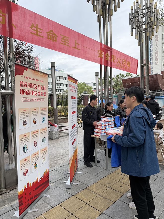此外,活动特别定制了印有消防标语的纸巾和毛巾等精美礼品各200余份。一位领到礼品的居民笑道:“这些小物件既实用又能提醒我们注意安全,比单纯发传单更让人印象深刻!”工作人员在分发资料时,还结合居民实际需求,耐心解答关于家庭用电隐患、电动车充电安全等疑问,并现场讲述灭火器、防烟面罩的正确使用方法,吸引众多居民驻足学习。此次宣传活动得到了居民的广泛响应。不少家庭“组团”参与,家长带着孩子共同学习消防知识,孩子们在互动中掌握了拨打119的注意事项和火灾逃生技巧。