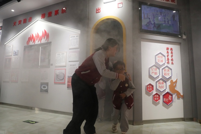走进消防员营房,整齐划一的环境让孩子们驻足赞叹,消防员现场示范叠“豆腐块”被子的技能,让孩子们深刻感受到纪律与规范的重要性。在消防科普馆,孩子们通过趣味互动学习逃生技巧,牢记“湿毛巾捂口鼻、低姿匍匐前进”的自救要领;远处操场上,孩子们亲身体验了消防爬梯的惊险,消防员勇敢无畏的职业形象深深烙印在孩子们心中。