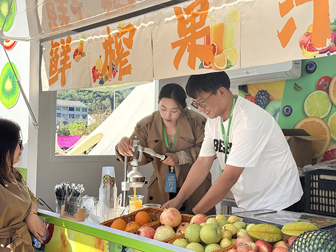 沙头镇高浦渔村的果汁餐车里,压榨机运转的嗡嗡声与青年们的欢声笑语交织在一起。本地网红邵安琦熟练地操作着榨汁机,新鲜的果蔬在她手中变成一杯杯清爽可口的果汁。“平时我通过镜头传播农村生活,这次亲身体验果汁制作,让我更深入地了解了乡村创业的细节。”邵安琦一边忙碌,一边分享着自己的感悟,她希望通过这次体验,挖掘更多乡村特色元素,让更多人爱上楠溪江的乡村风情。