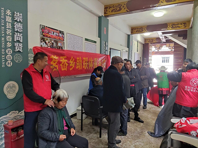 礼堂内暖意融融,志愿者们凭借专业技能为村民提供全方位服务:理发师傅细心修剪发型,医护志愿者精准测量血糖血压,中医志愿者则通过推拿缓解老人的关节不适,每一项服务都充满耐心与爱心。岩山村村干部也积极投身其中,主动协助志愿者做好人员登记、秩序维护等工作,形成服务合力。据统计,此次活动共计为岩山村村民提供各类服务121人次,用专业服务为老人们的晚年幸福生活保驾护航。