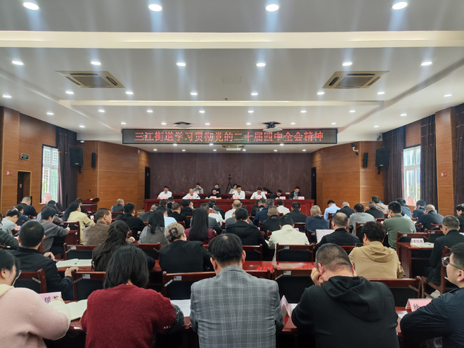 日前,三江街道召开专题学习会议,组织全体人员集中学习贯彻党的二十届四中全会精神。街道全体机关干部、部门站所负责人、村社党组织书记参加会议。