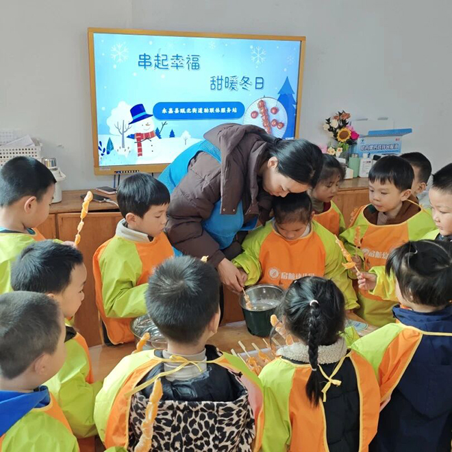 近日,瓯北助联体服务站开展了“串起幸福甜暖冬日”糖葫芦制作主题活动,让这个冬天因甜蜜而格外温暖。活动开始,社工先通过生动的图片和小故事,向孩子们介绍糖葫芦的起源与发展,从古代的“糖球”讲到如今的花样吃法,孩子们听得目不转睛,时不时举手提出自己的小疑问,现场互动氛围十分热烈。