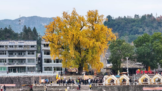 大若岩镇党委副书记、镇长周谢龙介绍,12月份是“银杏王”的最佳观赏期,银杏文化月活动旨在以银杏为媒,吸引更多游客走进大若岩。活动既充分展现了古村的自然美景与人文魅力,又通过共富市集等形式拓宽了村民增收渠道,让一片小小的杏叶银杏王成为串联文旅发展与乡村共富的“金纽带”。