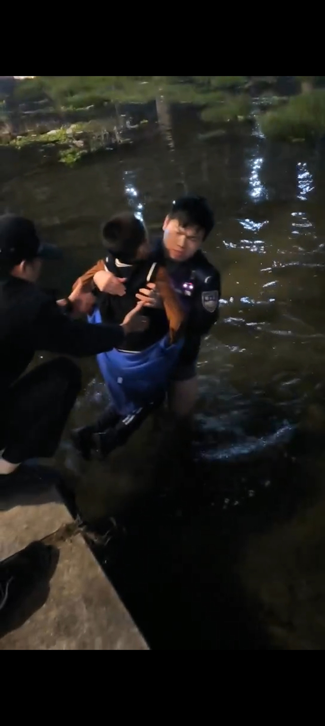 在紧张的搜寻过程中,派出所辅警吴亚洲在途经菇溪河黄堡村段时,注意到河中有异样——那个众人焦急寻找的男孩,竟被困在漆黑的河道中央!冰冷的河水已漫至孩子胸口,夜间水流湍急,水下情况不明,男孩正无力地挣扎着,身体被水流裹挟着缓慢移向更深更危险的水域,随时可能发生溺水意外。