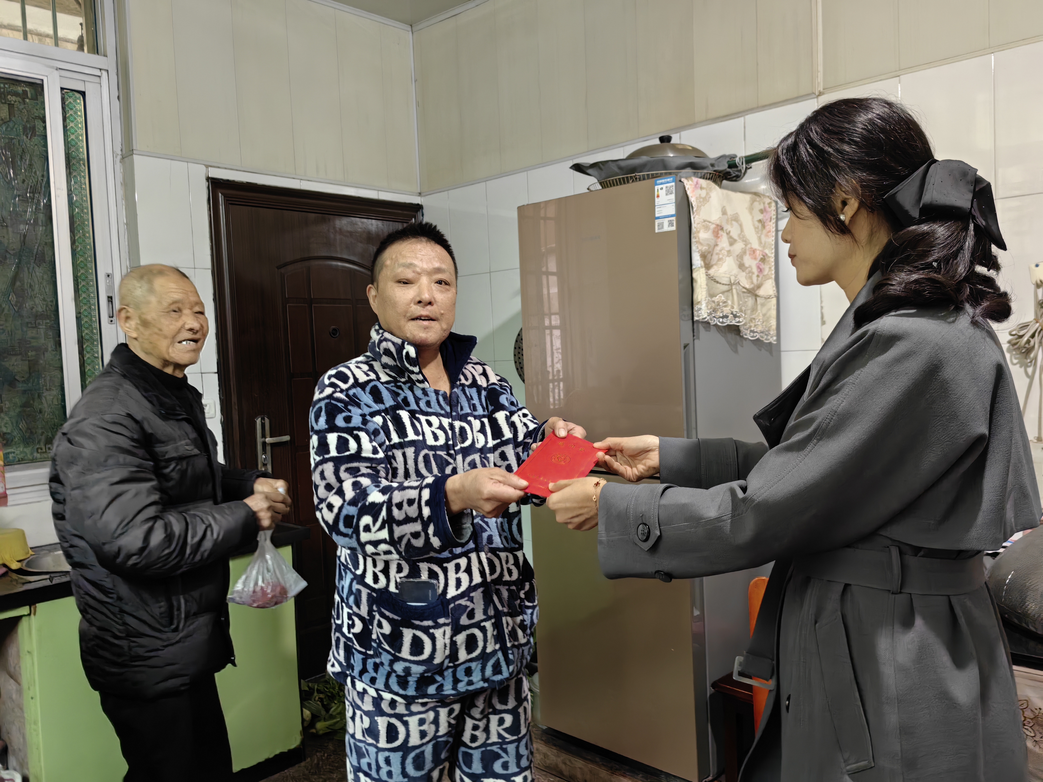 12月10日,永嘉县慈善总会救助部工作人员前往瓯北街道堡二社区,为重疾患者谷建新送上5000元救助金,为其后续康复注入慈善力量。
