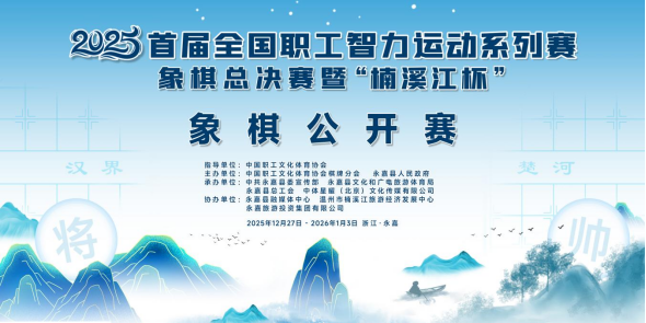 小布今天获悉,由中国职工文化体育协会指导,中国职工文化体育协会棋牌分会、永嘉县人民政府主办的2025年(首届)全国职工智力运动系列赛象棋总决赛暨“楠溪江杯”象棋公开赛将于12月27日在永嘉县四季云岚度假酒店举行,将有来自全国12个省的职工和职工子女共400多名运动员参赛。