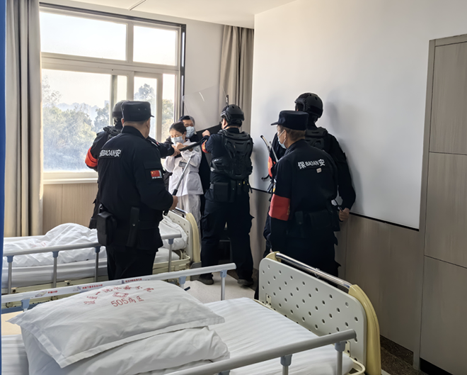 此次活动,结合医院人员密集、流动量大的特点,围绕反恐防暴基础知识、应急处置流程、防暴器械的正确使用方法等内容,在演练前为参与演练的医护人员、安保人员进行了细致讲解和实操培训,为演练顺利开展打下坚实基础。