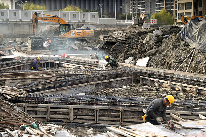 在嘉一大楼建设项目施工现场,工人们正紧张有序地开展维护柱浇筑、混凝土支撑等关键工序施工,地下室雏形已清晰显现。“我们已经完成两块工作,目前第一层土方开挖已基本完成,同时地下室第一道支撑维护也已完成90%以上,年前将主要完成第二层土方开挖和第二道支撑维护建设。”项目经理楼永革说。