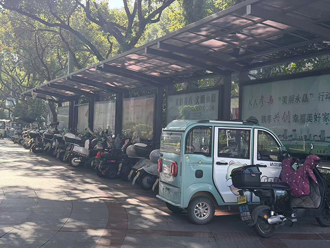 26日上午,记者前往广场路与永兴路交叉口探访,路口雨棚下,原本为视障人士指引方向的盲道砖,被密密麻麻的电动车覆盖,已然“无路可寻”。多数骑行者图方便,将车停在雨棚下遮阳避雨,忽视了盲道的特殊功能。“人行道都被电动车占满了,车辆就该停到规定泊位去。”市民陈阿姨无奈表示,人行道被占后,行人只能绕行非机动车道,既不便又有安全风险,影响出行体验。