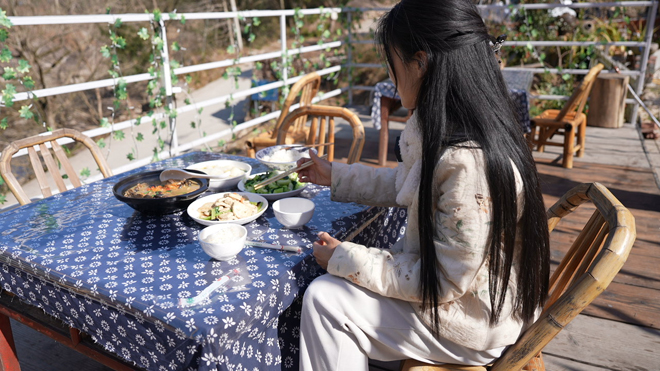 随着账号知名度渐长,向往田园生活的网友慕名而来。“大家来了总想体验一下,体验了就要吃饭。”原本只为拍摄而设的小院,就这样“无心插柳”地成了兼具餐饮与体验功能的田园驿站“小六的院子”。