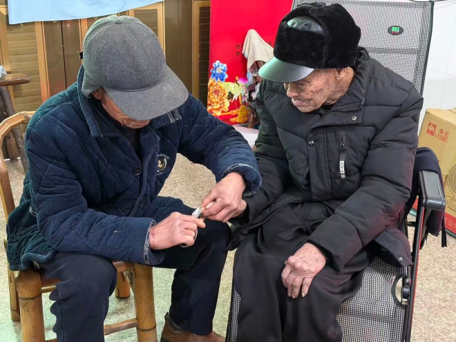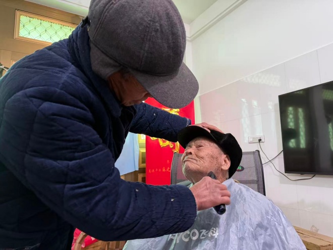 从71岁到103岁,麻之文在二儿子麻荣持家中已度过三十余载春秋。这份陪伴,从不是轰轰烈烈的誓言,而是散落在每一个寻常日子里的细碎温柔。近日,记者走进这个温馨的小家,只见老人与麻荣持并肩坐在电视机前,身旁的小太阳暖意融融。麻荣持正手持工具,俯身为父亲修剪指甲、剃去胡须,动作轻柔,神情专注,时光在这份陪伴中显得格外温润绵长。
