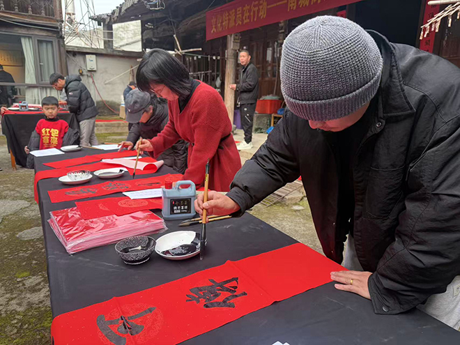 前三村党支部书记胡文雄对此次活动赞不绝口,他表示,村里前几年就持续开展送春联活动,今年在文化特派员的助力下更具特色,参与的村民也更多了。“对村民来说,这样的活动特别喜欢,不少老人不方便外出买春联,在家门口就能领到。”胡文雄说,活动不仅让村民收获了实实在在的祝福,更聚拢了人心,让乡村充满了热闹的年味儿,“大家围着看书写春联、互相分享喜悦,邻里感情也更近了。”