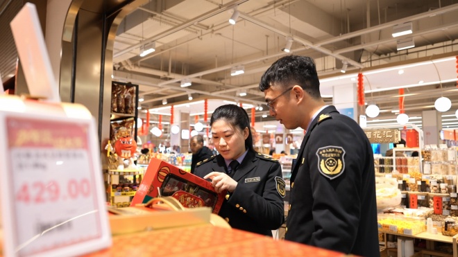 9日下午,县市监局执法人员深入超市、农贸市场等食品消费重点区域,对各类食品的质量、储存、溯源等情况开展细致检查,全面排查食品安全隐患。此次专项检查还聚焦假冒伪劣、虚假宣传、侵权等违法行为,坚持严管严查,全力筑牢节日食品安全防线,切实保障群众饮食安全。