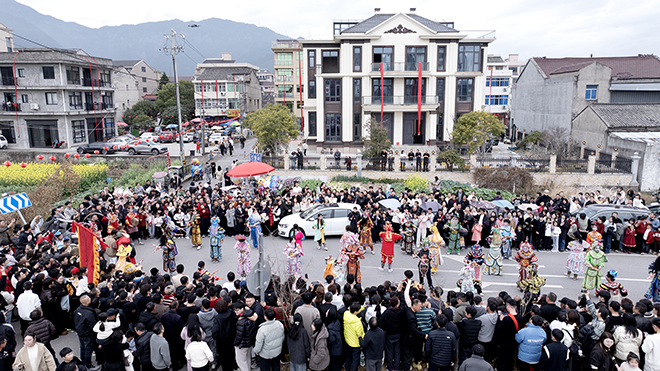 对八里村村民而言,龙灯盛会是一年一度的民俗盛宴,年轻一代主动参与传承,热闹的氛围也吸引着周边村落群众前来共赴这场传统之约。据悉,八里村舞龙灯习俗始于明朝万历年间,至今已有400多年历史,其中永嘉虾蛄龙舞于2016年被列入第十批温州市非物质文化遗产名录,成为当地民俗文化的鲜明标识。该村龙灯盛会固定在每年正月初八举办,承载着村民们祈求来年风调雨顺、国泰民安的美好心愿。